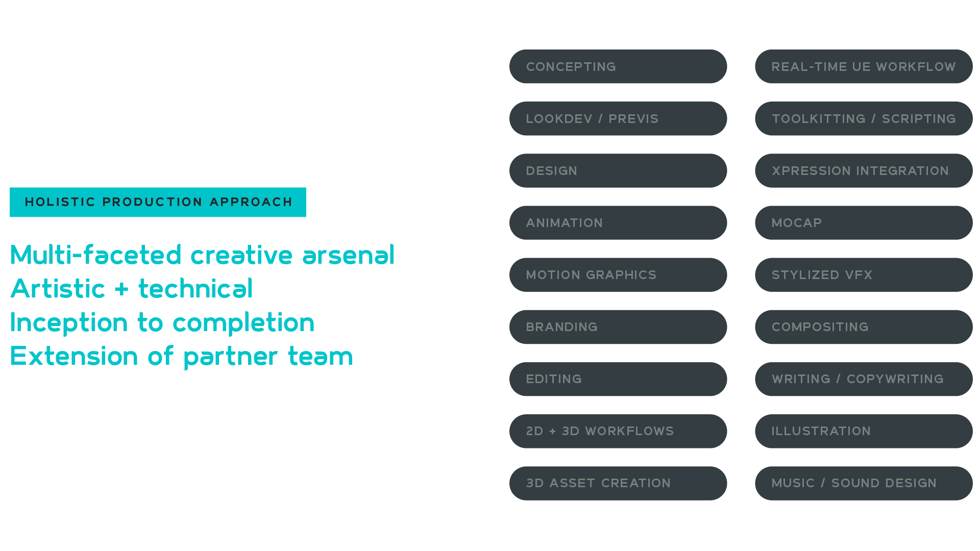 We like to describe ourselves as a friendly creative agency with a sweet spot in the gaming industry. Our studio is home to a hand-picked team of artists and dynamic individuals with a shared passion for using our creative energy to build fun and engaging things together. The following content is an overview of our capabilities and a testament to all of the amazing partners with whom we've had the pleasure of collaborating.